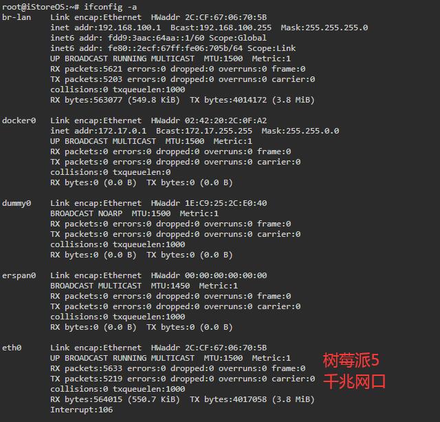 eth0为树莓派5的千兆网口,即默认的LAN口;