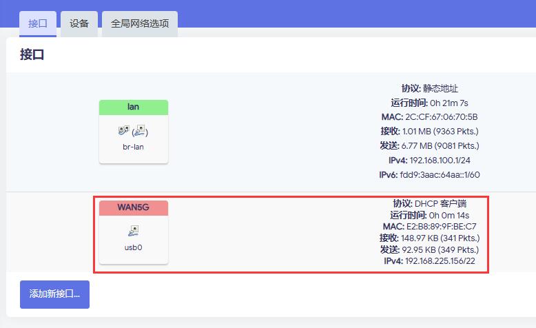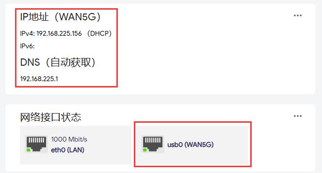 返回首页,可以在网络接口状态看到,usb0设置成为了WAN口: