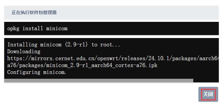 在iStoreOS系统里使用5G模块的AT命令,可通过minicom串口工具来执行,需先在系统里安装minicom串口工具,操作如下(确保系统的WAN口能连接外网):