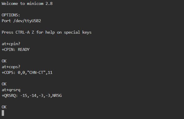 在默认情况下,RM520N-GL的AT命令串口为ttyUSB2。