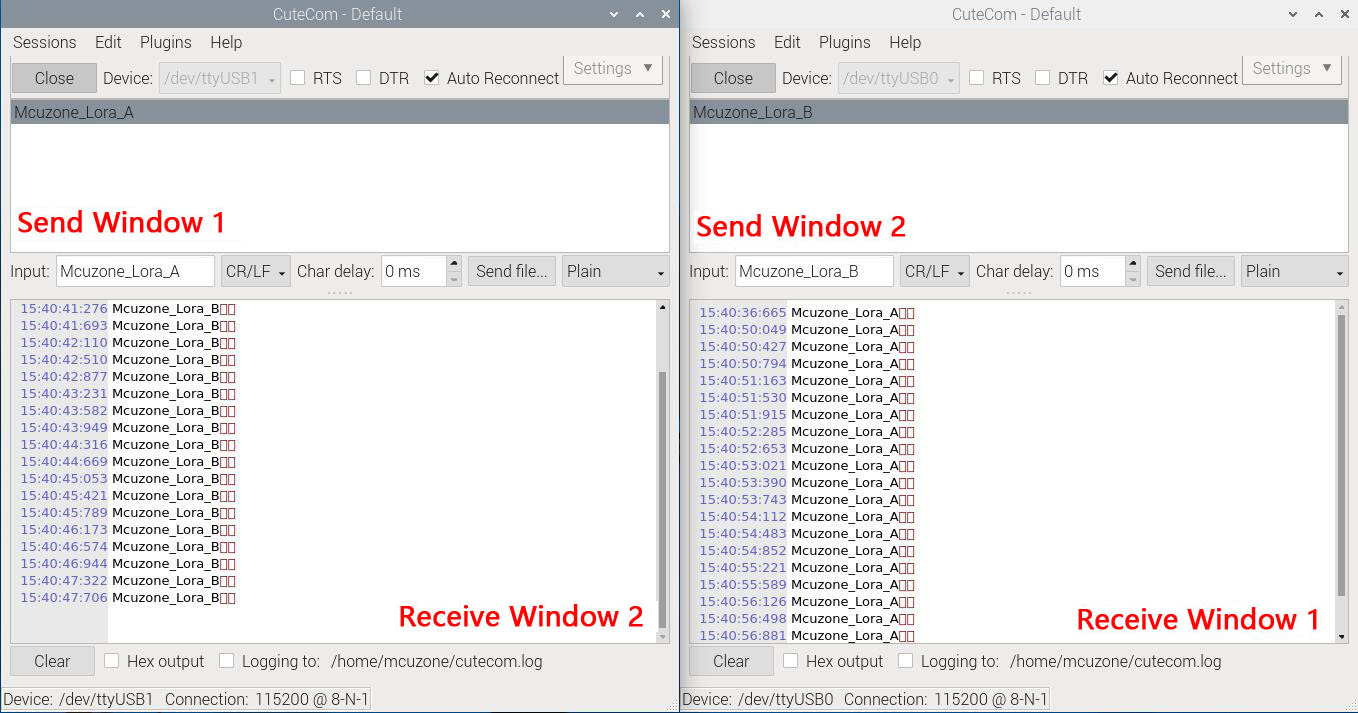 4.2.4 Two expansion boards transmit data via LoRa and serial port