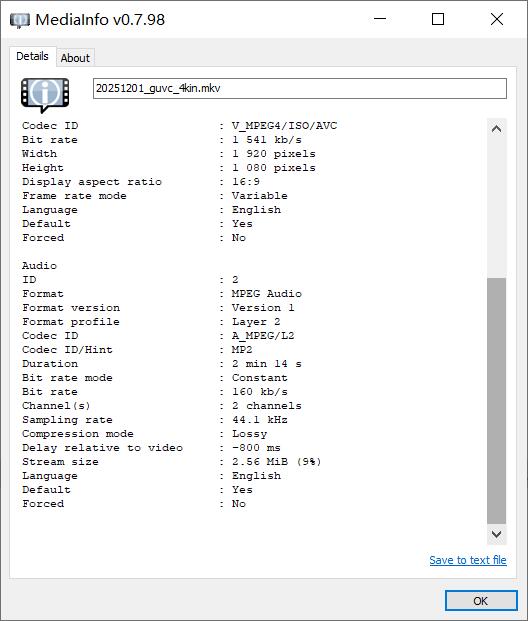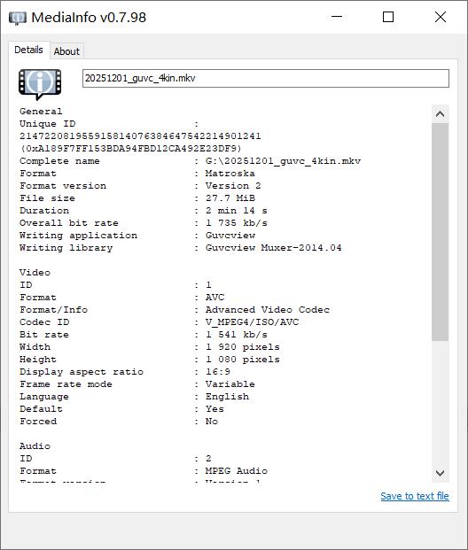 我们录制了一段2分14秒的视频,视频具体参数如下:
