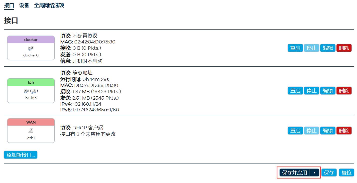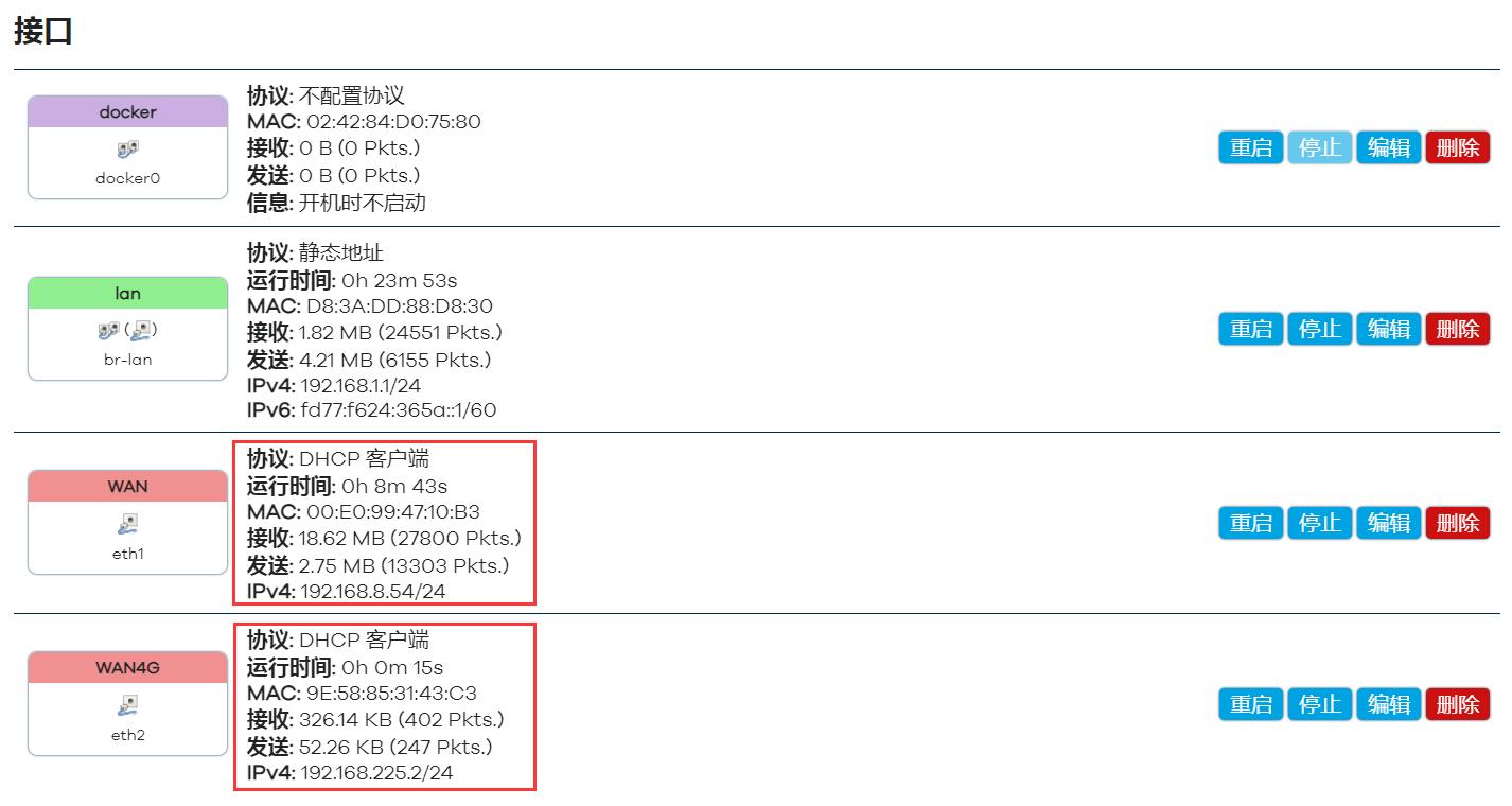 我们用同样的方法,将高通4G模组(eth2,“名称”不能重复)也配置为WAN。