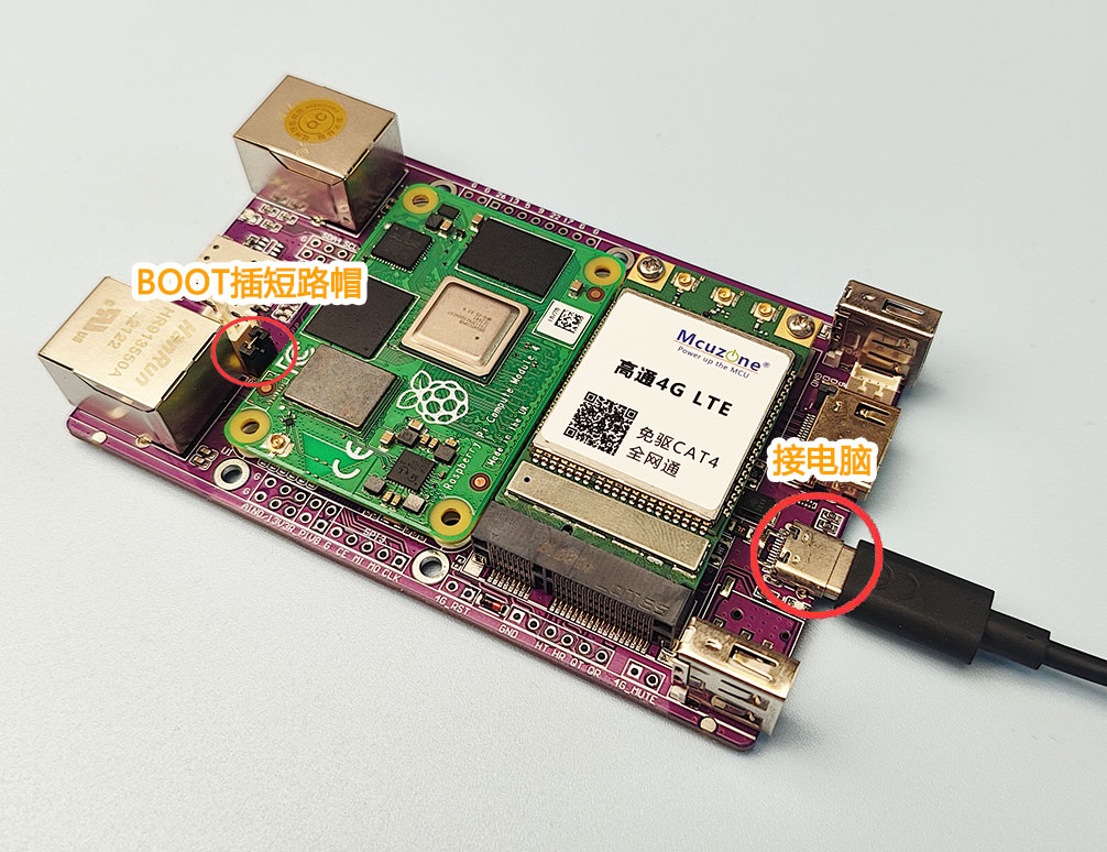将USB Type-C接口接电脑,BOOT跳线短路帽接上: