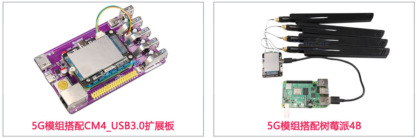 硬件平台为CM4 5G mini搭配树莓派4B。我们已经将5G模组做好配置,在树莓派官方OS下免驱免拨号,自动识别。(如用户自己的5G模组,需要自己配置或者自己整驱动,不然无法实现免驱的,无法参考此章节)