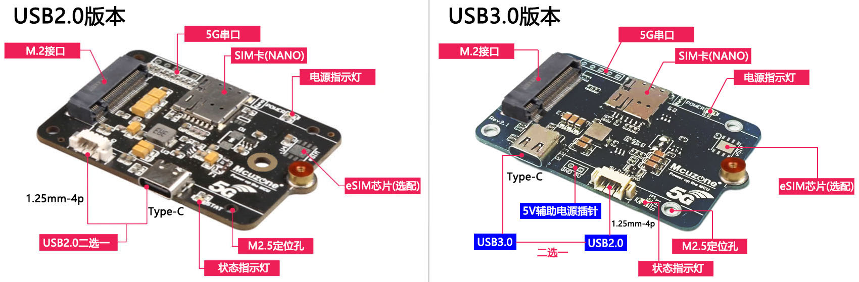 | 2个版本区别 | CM4 5G mini | CM4 5G mini_USB3.0 |