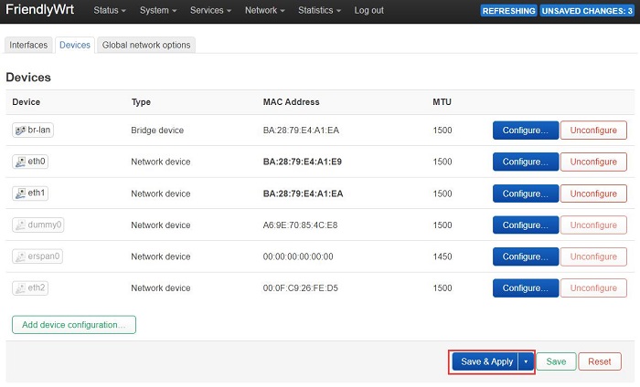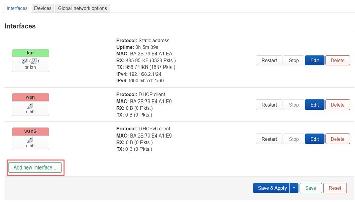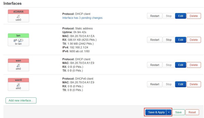 It automatically returns to the "Interfaces" page, then click "Save and Apply":