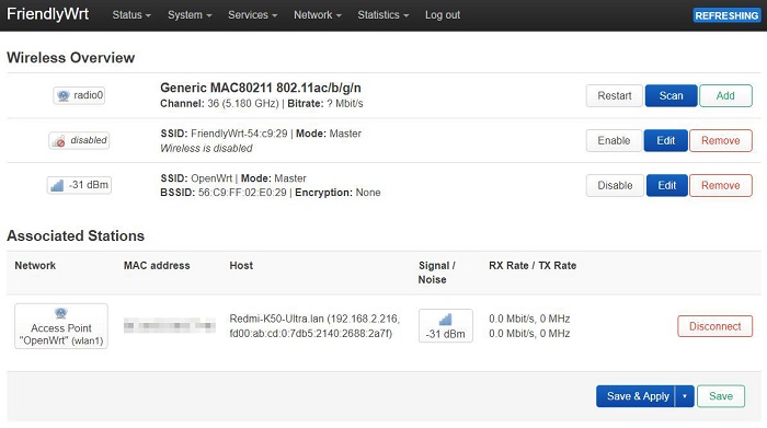 Connect the LAN port of the R3S to the upstream router, then connect the PC to the same upstream router.After the OS boots, check the IP address of the R3S through the router's backend. In this document, the address obtained by the OS is: 192.168.8.35.