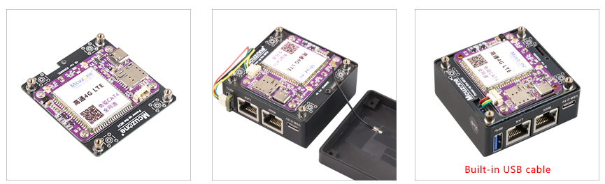 The 4G module for the R3S is a 4G LTE kit designed specifically for the FriendlyElec NanoPi R3S development board. It is based on our CM4 4G mini module, which we have designed a 4G carrier board along with a matching 3D-printed base to compose the set. The 3D printed base is designed to replace the R3S enclosure base and incorporates an integrated 4G antenna. The 4G module is supported driver-free by the Friendlywrt and Ubuntu, with auto-identification and no need for additional driver installation.