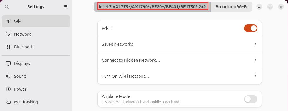 For comparison, the image below shows the WiFi settings when no SSD is connected, with the WiFi7 module highlighted in the red box:
