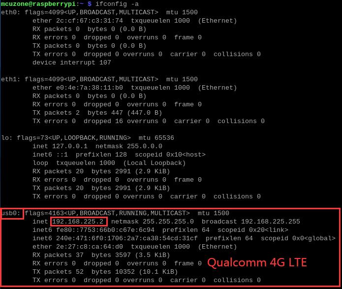 在树莓派官方OS里,CAT4 4G和ZTE CAT4 4G,系统均自动识别成eth设备,高通4G/高通4G-GPS自动识别成usb0。