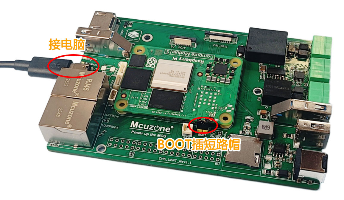 将BOOT跳线短路帽接上,USB Type-C接口接电脑: